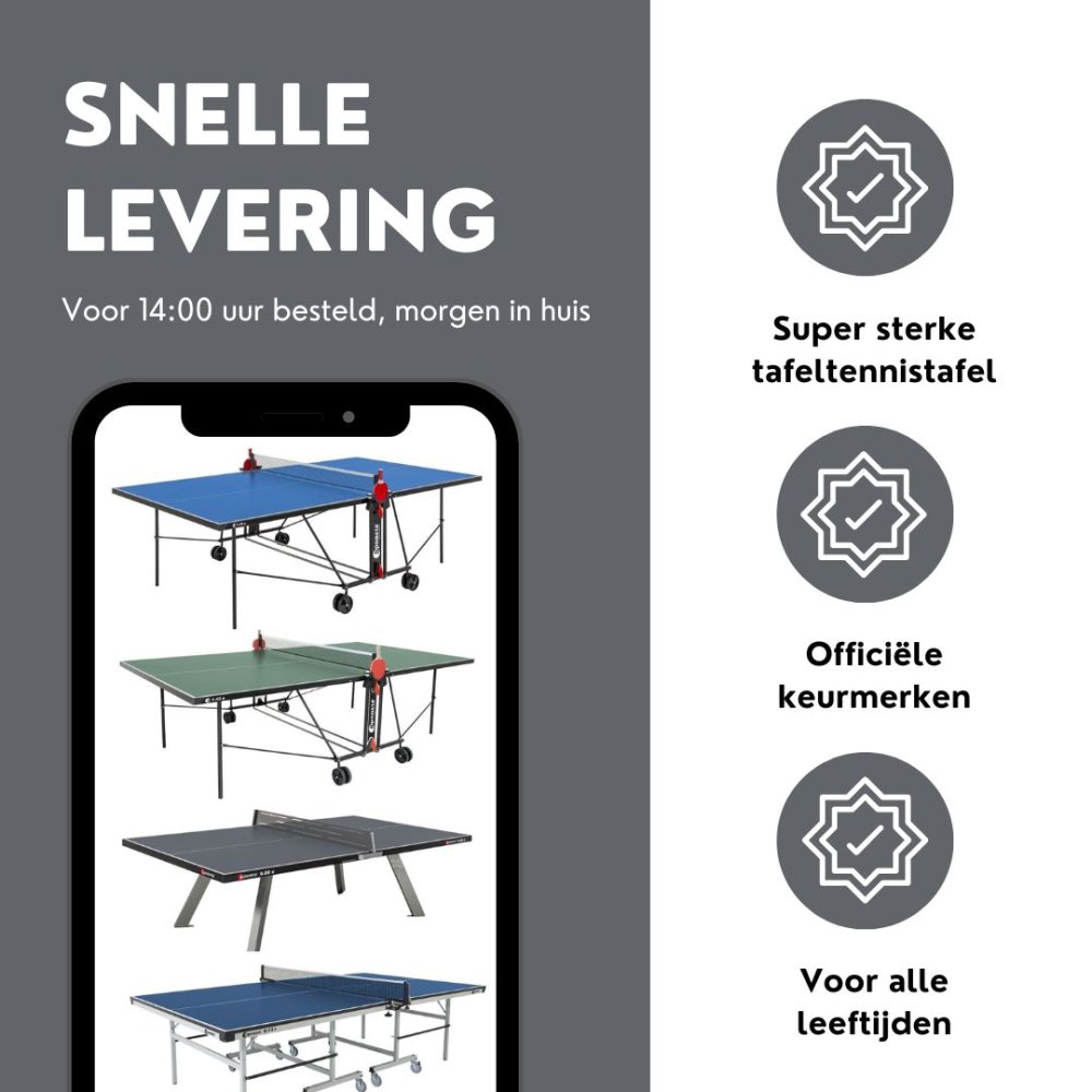 De tafel heeft een stevig onderstel en beschikt over de professionele afmetingen, waardoor deze tafel ook geschikt is als professionele trainingstafel.